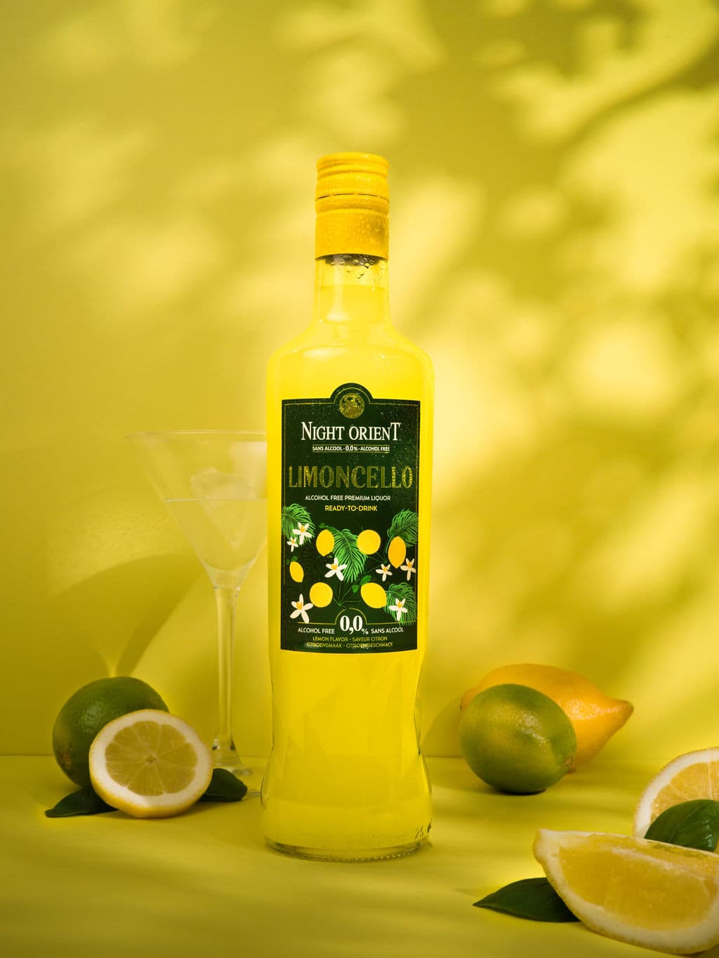 Night Orient Limoncello sans alcool offre l’intensité du citron frais et une douceur exquise, revisitant le classique italien.