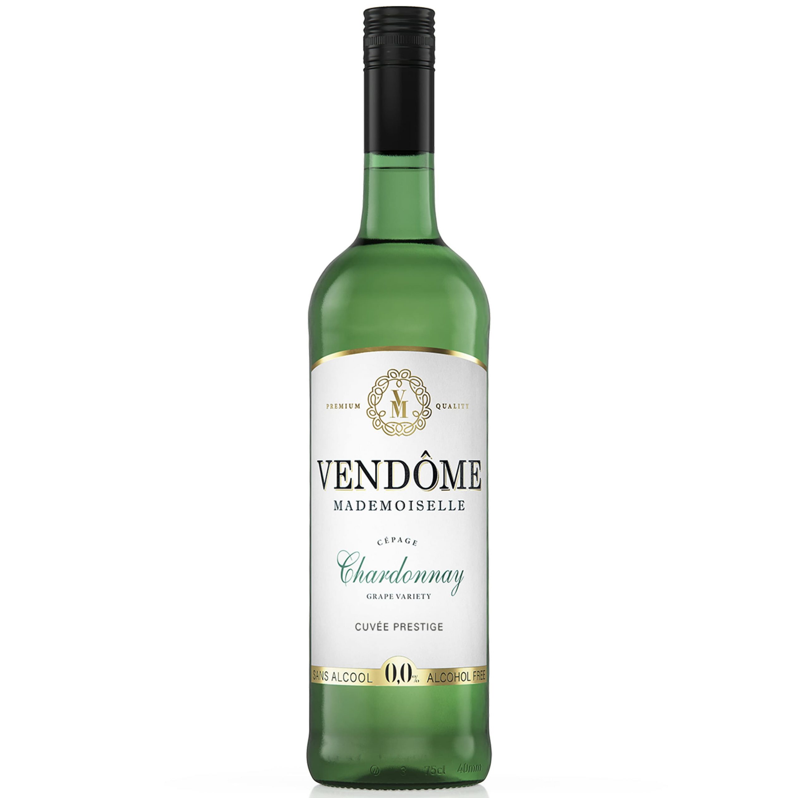 La boisson sans alcool Vendôme Mademoiselle Chardonnay, à base de vin désalcoolisé dont les ingrédients sont issus de l’agriculture biologique, est conçue à partir d’un raisin brillant et doré. Dans sa robe jaune paille, cette boisson sans alcool à base vin désalcoolisé est ample et élégante. Elle se caractérise par un bel arôme fruité facilement reconnaissable. Un arôme riche en agrumes, pamplemousse et citron, mais aussi en acacia, caramel, beurre frais et noix de muscade. Son goût est délicieusement acidulé, voire même minéral et provoque une belle fraîcheur en bouche. Cette boisson sans alcool à base de vin blanc désalcoolisé est fruitée et agréable, facile d’accès, elle peut être consommée à tout moment et peut accompagner presque tous les plats et particulièrement les poissons, crustacés ainsi que la volaille.
