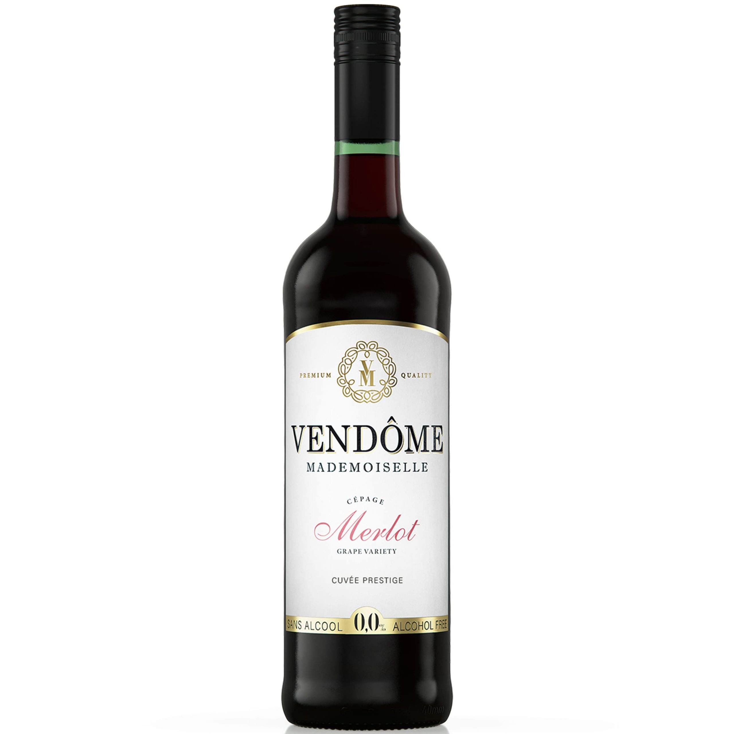 Le Vendôme Mademoiselle Merlot est une boisson sans alcool à base de vin désalcoolisé dont les ingrédients sont issus de l’agriculture biologique. Elle est élaborée à partir d’un cépage Merlot rouge, aux petites baies noires, cultivé sur un sol calcaire dans la région de La Mancha sous le soleil d’Espagne. De couleur rubis, sombre et dense, le Merlot offre une palette aromatique semblable aux plus grands vins alcoolisés. Elle s’exprime sur des arômes de fruits noirs comme le cassis et la mûre mais aussi la cerise et le pruneau. Dès la première gorgée, le palais est alors marqué par des notes de cuir, de sous-bois et d’épices. Le Merlot est souple en bouche avec un bon équilibre, des tanins persistants et une finale sèche. Cette alternative au vin alcoolisé de plaisir fruité et agréable, facile d’accès, est recommandée avec presque tous les plats, particulièrement avec les viandes en sauce, le gibier et peut être consommée à tout moment.