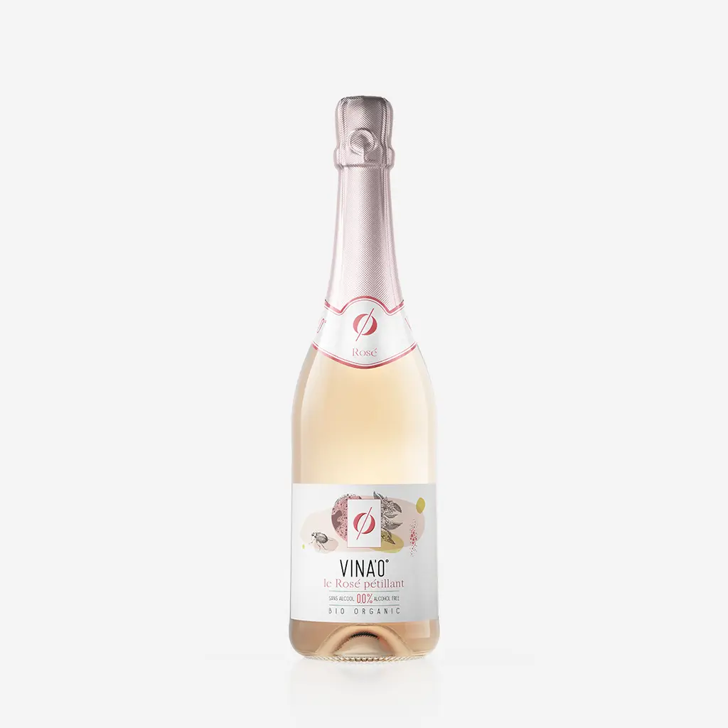 Behind its elegant bubbles and pomegranate colour, our alcohol-free Vina'0° Rosé Pétillant, made from dealcoholized wine with ingredients sourced from organic agriculture, has a refined character. Enjoy this chic rosé, with a distinguished bouquet that offers beautiful notes of red berries and a hint of citrus. Its finesse makes this non-alcoholic beverage the ideal partner for alcohol-free festive occasions.
