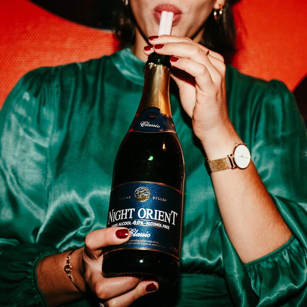 Totalement innovante, Night Orient est la première gamme de boissons sans alcool lancée par Univers Drink. Elle a d’abord accueilli deux élégantes alternatives au champagne, le Night Orient Classic et le Night Orient Rosé. À ces deux piliers de la marque sont venus s’ajouter quatre vins 0% : deux blancs (le Sauvignon et le chardonnay), un rosé (le Tempranillo) et, depuis 2021, un rouge (le Merlot).