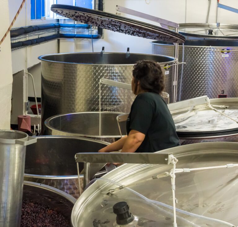 Les raisins soigneusement sélectionnés, base de nos vins, sont récoltés et pressés pour en extraire le jus qui sera transformé en vin. A cette étape, le jus ne contient pas encore d’alcool.